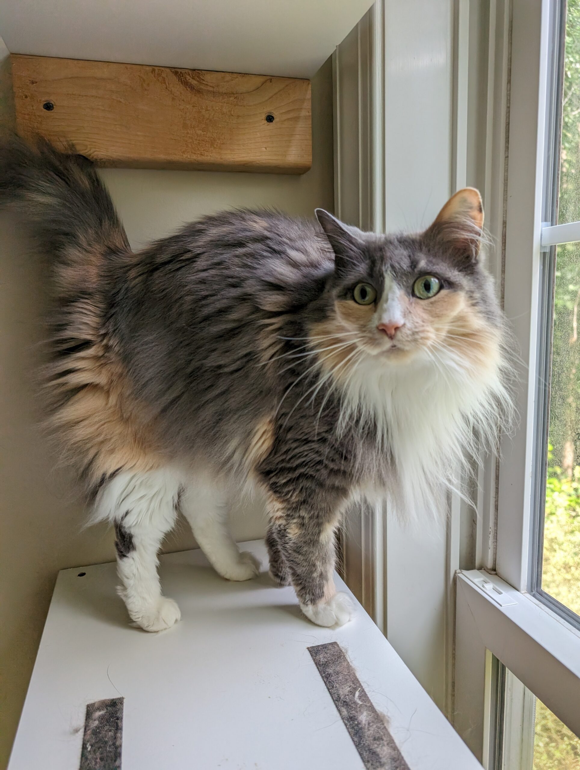 Providing appropriate scratching surfaces for your cat is important to their mental well being as well as keeping your furniture free from inappropriate scratching. Scratching posts or mats allow your cat to spread their scent and have a sense of ownership of the space. Cats have different preferences when it comes to scratching surfaces so providing a variety from the start is a great idea. You can make a simple scratch post with a 2×4 and some sisal rope from your local hardware store. This can then either be laid on the floor or mounted to the wall, depending on your cat’s preference. It is important to consider that in a vertical scratching post, the cat should be able to stand up and stretch to their full length without hitting the end of the post. Carpet squares also make great scratching surfaces and can be mounted directly on the wall, on a shelf, or on a piece of wood to sit on the floor.