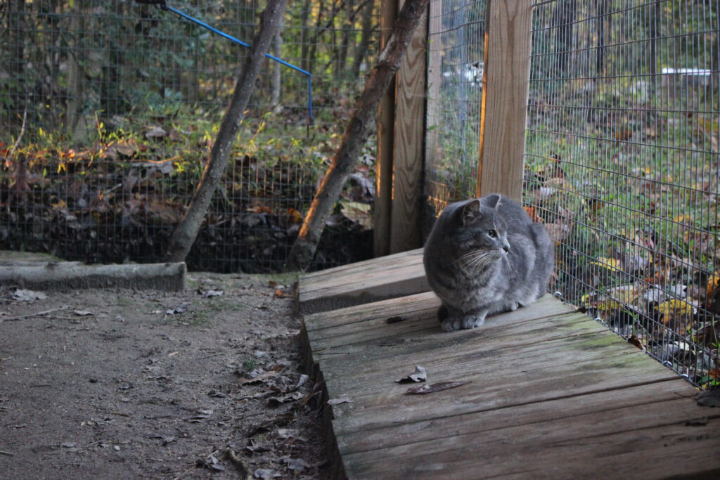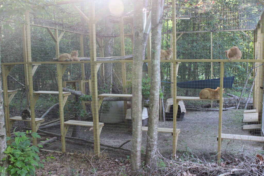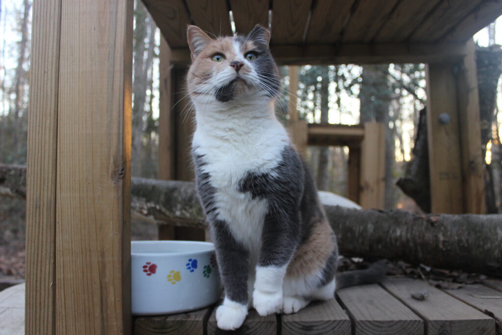 This group of cats is a feral colony that our co-founder, Emily, has been caring for since 2014. They originally lived at an apartment complex in Baltimore and when the complex decided they didn’t want the cats around any more, the whole colony was moved to North Carolina, their current home.