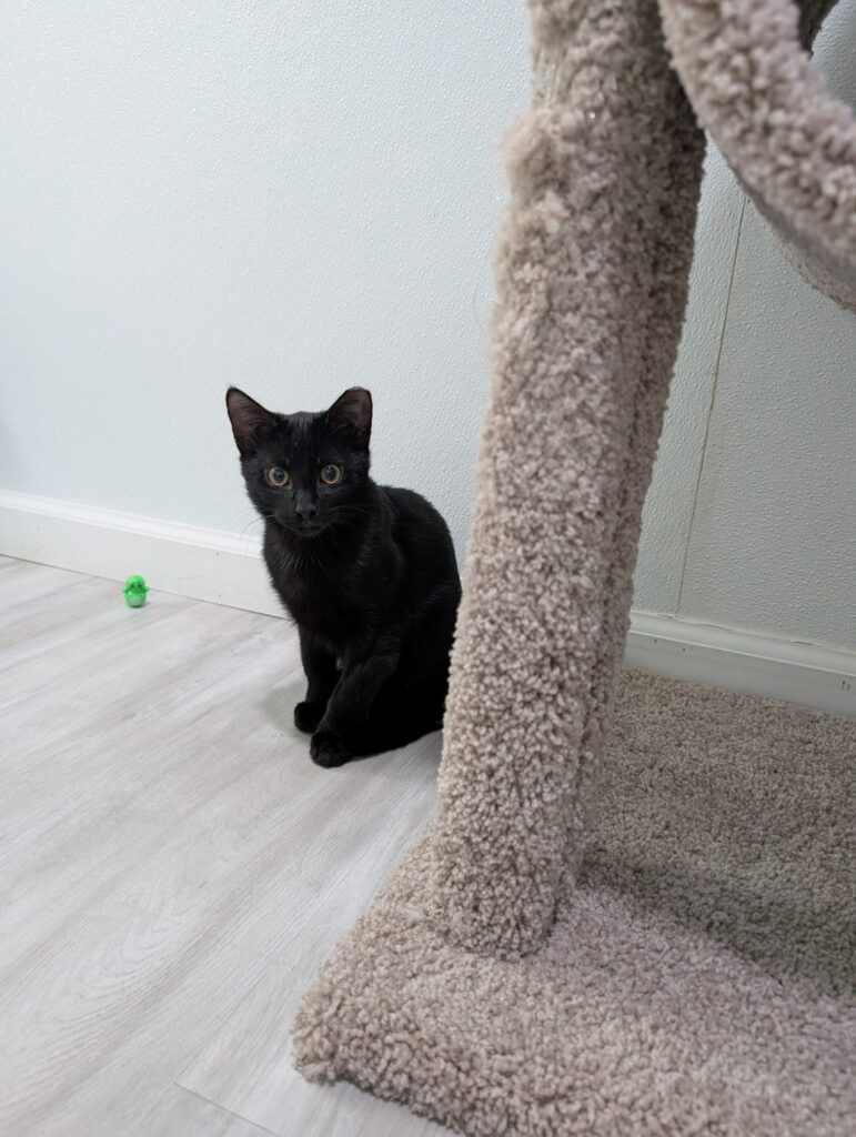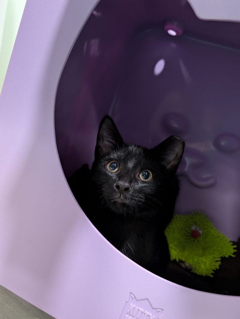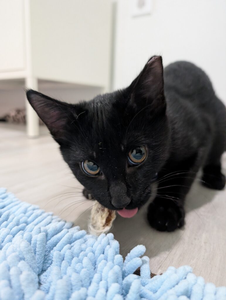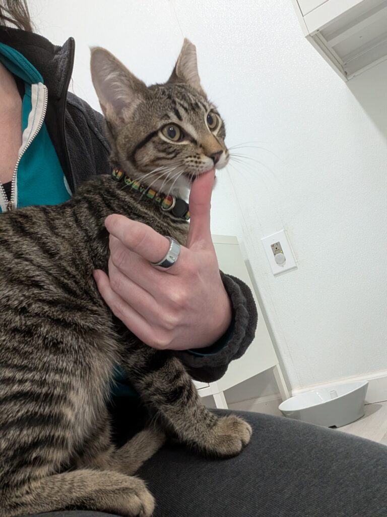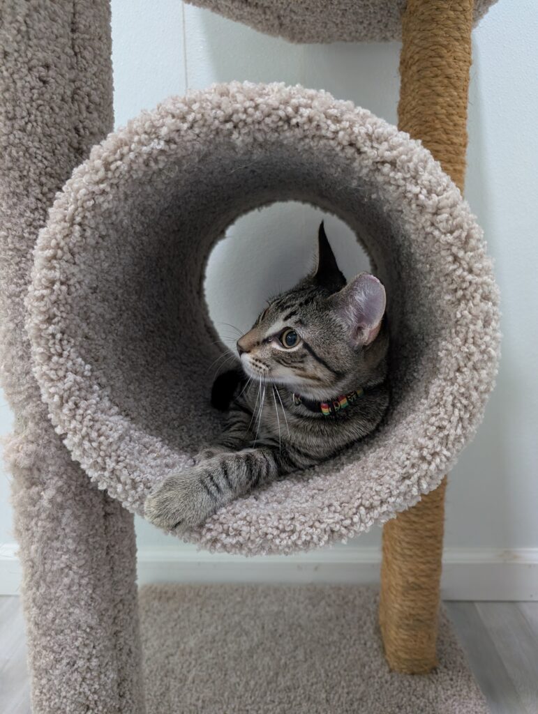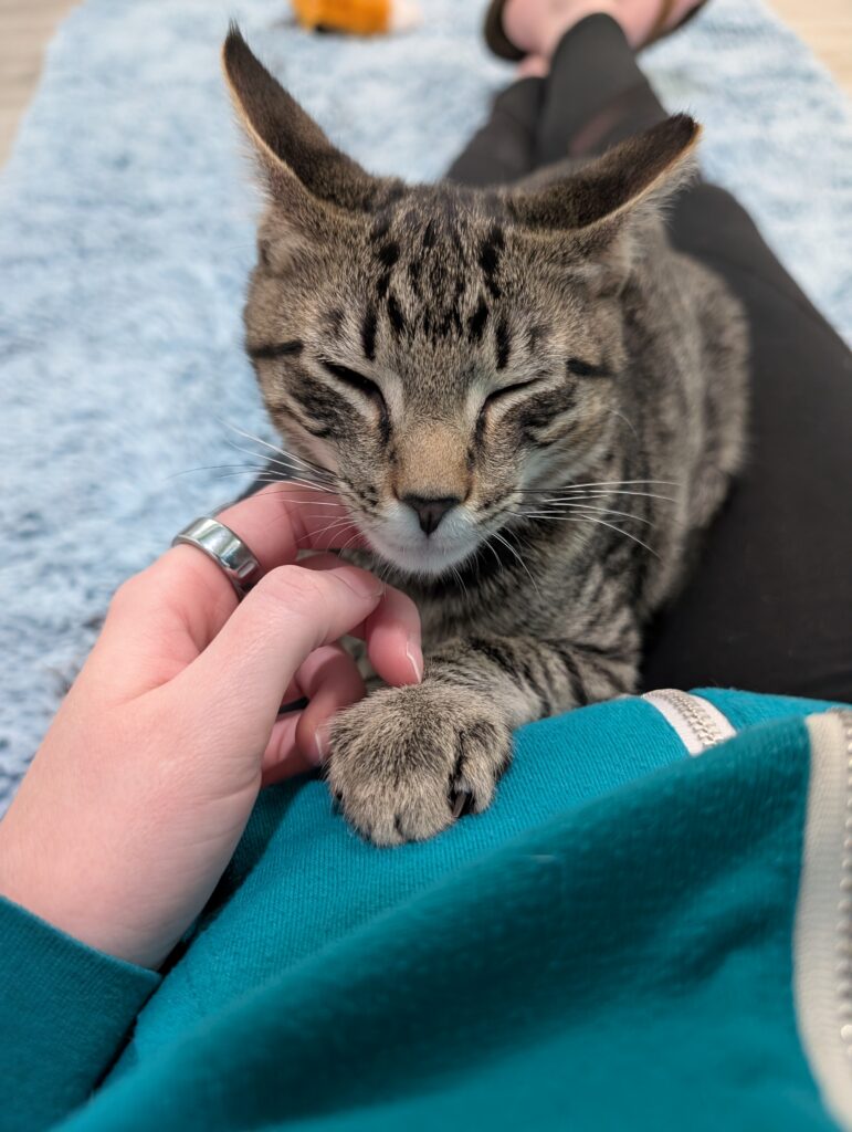 If you sit down, one or both are ready to take over your lap. It may not last long, after all, there is a TON of playing to do when you’re a kitten, but they are purr machines while they’re there.