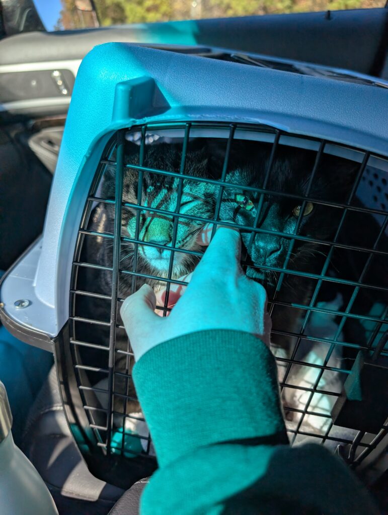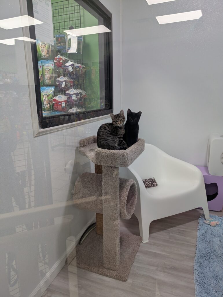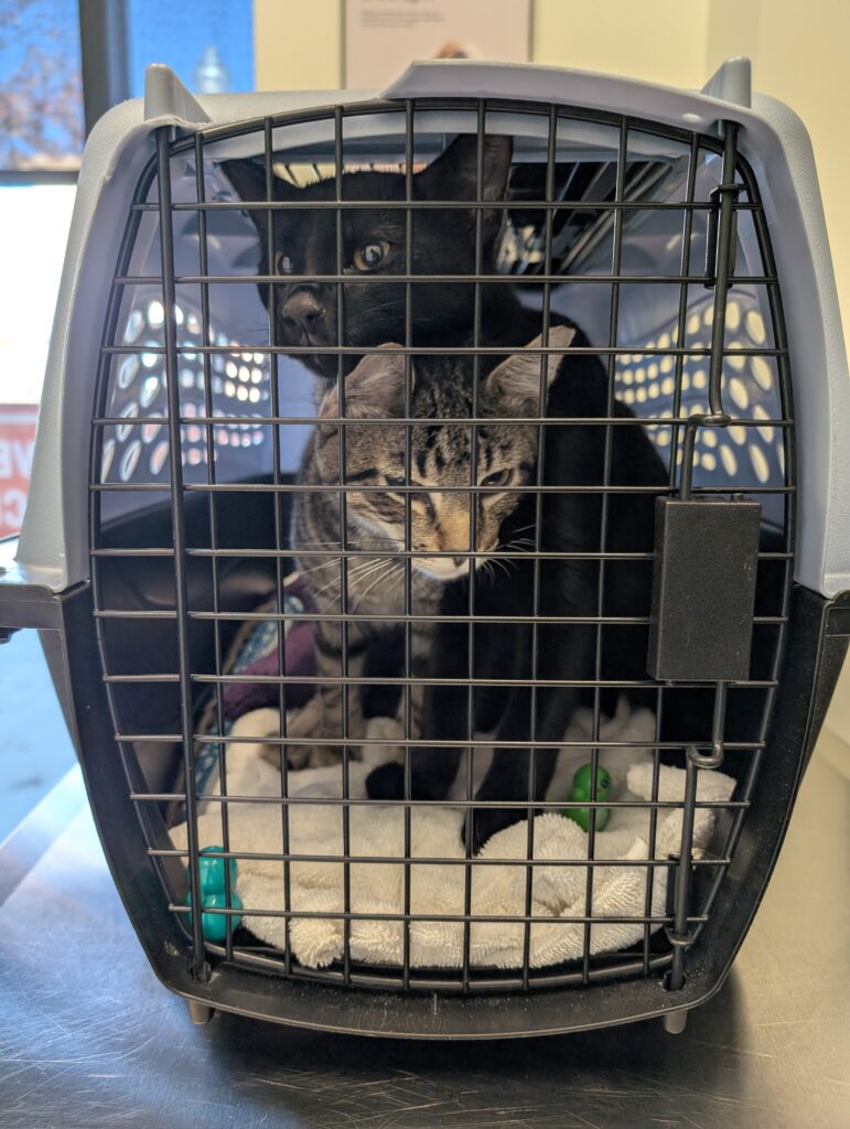 Ralph and Felix are litter mates. Their mom is a feral cat and the people watching over her were about to get her spayed for TNR when, surprise! She had kittens! Her people were able to find homes for a couple of the babies but Ralph and Felix were still looking so they came to us.